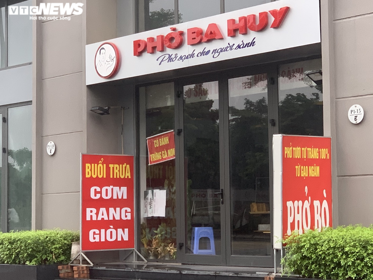 Cách đó không xa, một cửa hàng phở và cơm rang cũng đang mở cửa, hoạt động cầm chừng phục vụ khách mua mang về.