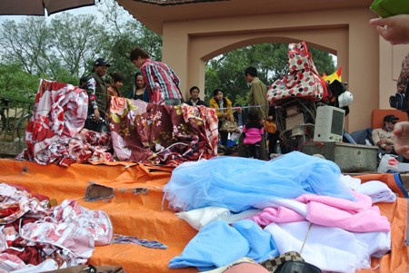 (VTC News) – Những sạp hàng bán chăn, màn, gối… bày bán bành trướng ngay trước cổng chính vào hội Lim khiến người ta liên tưởng tới một phiên chợ xô bồ.