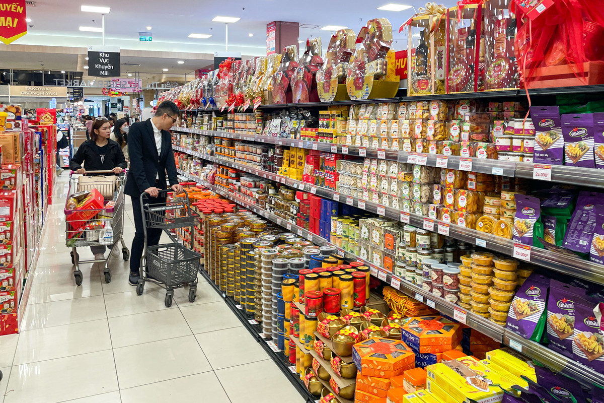 Hàng Tết đầy ắp trong siêu thị và dự kiến sẽ hút khách từ nay cho đến những ngày giáp Tết, đặc biệt là dịp cuối tuần.