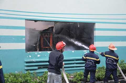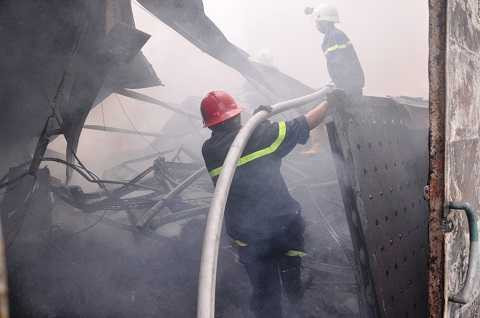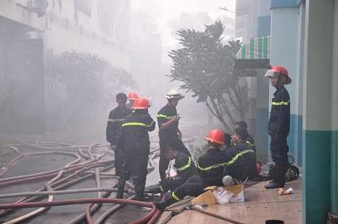 Lực lượng cảnh sát phải phá cửa các phân xưởng để khói thoát ra ngoài, phun nước xối xả vào trong. Những nơi có hóa chất các chiến sỹ buộc phải dùng mặt nạ chống độc, chống ngạt khói.