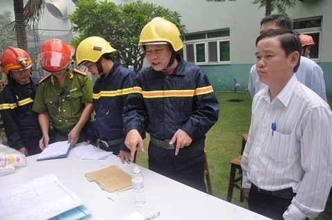 | Đại tá Lê Tấn Bửu - Gíam đốc Sở Cảnh sát PCCC TP.HCM trực tiếp đến hiện trường chỉ đạo chữa cháy |