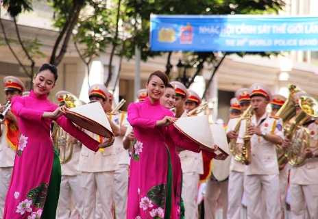 Đoàn nghi lễ Bộ Công an Việt Nam Trình diễn tại buổi lễ khai mạc Nhạc hội cảnh sát thế giới.