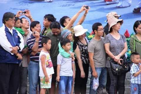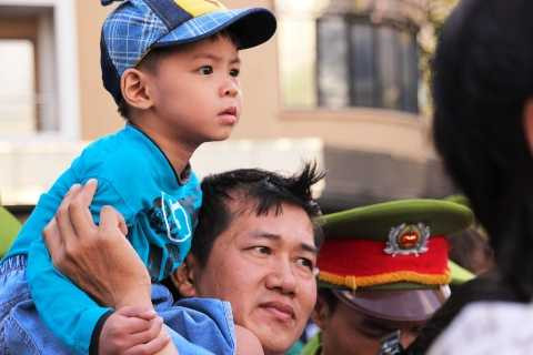 Nhiều người dân háo hức đứng chờ đoàn quân Nhạc đi qua.