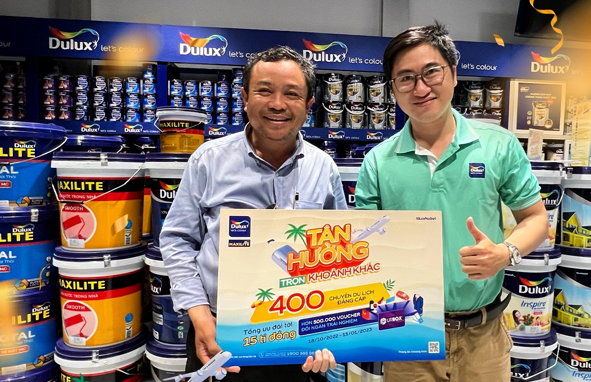 Theo đó, trong khoảng thời gian diễn ra chương trình, các nhà thầu và các cửa hàng bán lẻ của AkzoNobel Việt Nam khi mua sản phẩm sơn Dulux và Maxilite từ Dulux thuộc danh mục sản phẩm khuyến mãi sẽ được nhận thẻ quà tặng để tham gia tích lũy điểm và đổi hàng ngàn quà tặng e-voucher, quà tặng vật lý có sẵn trên ứng dụng tích điểm hoặc có thể sử dụng điểm để đổi chuyến du lịch Phúc Quốc đặc biệt dành riêng cho nhà thầu.