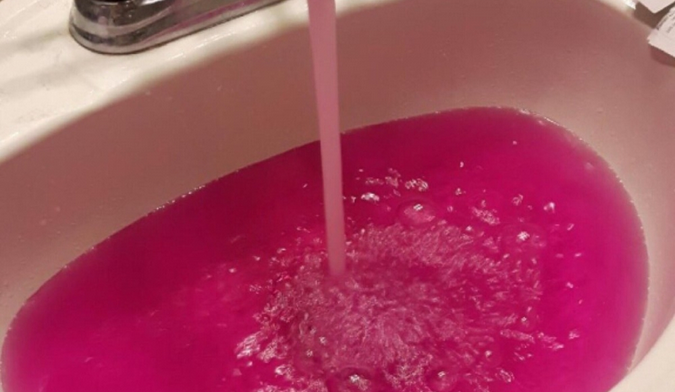 Nước máy đồng loạt chuyển màu hồng ở khắp thị trấn Onoway.