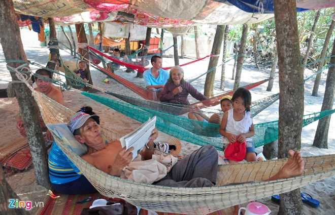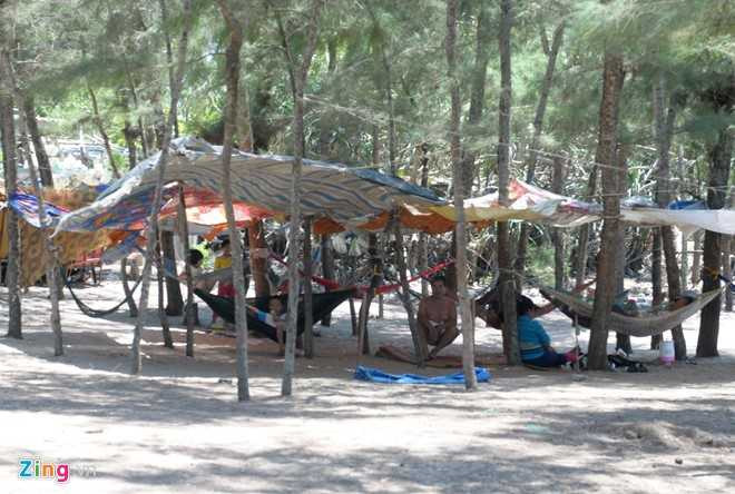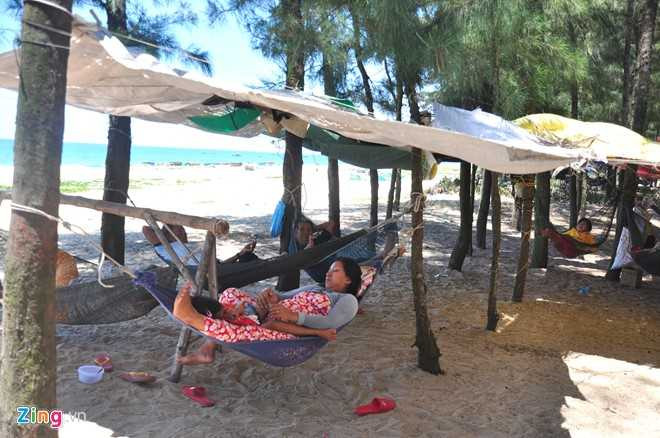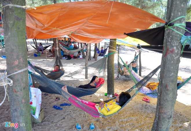 ![]() Họ căng lều bạt, mắc võng giữa các cây dương liễu ven biển nghỉ ngơi. |