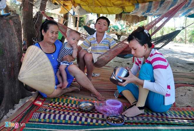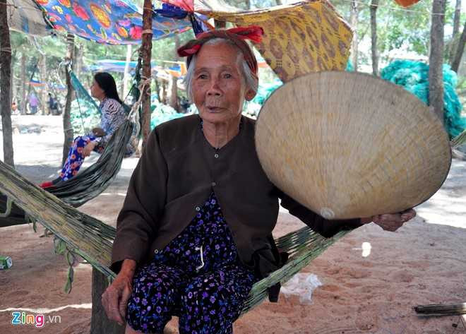 ![]() Dù ở trong lều dưới rừng dương, có gió biển nhưng các cụ già vẫn dùng nón quạt xua tan cái nóng. |