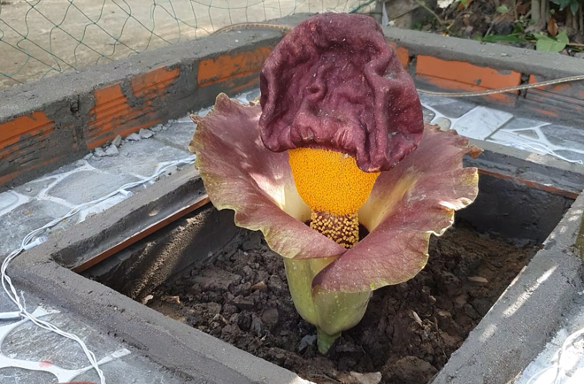 Thấy cây hoa lạ mọc gần nhà, ông Danh Tóc ở huyện Châu Thành, Kiên Giang xây gạch bao quanh, lập bàn thờ thắp nhang.