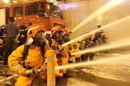Sau 20 phút, lực lượng PCCC có mặt tại hiện trường, đám cháy đã hoàn toàn được khống chế, những người bị thương nhanh chóng được đưa ra khỏi đường hầm, cuộc diễn tập kết thúc.