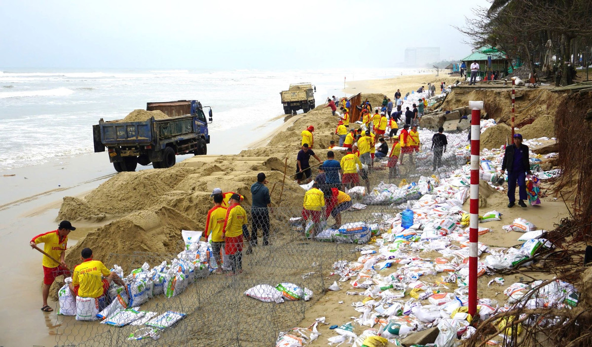 Hiện Ban quản lý dự án đầu tư xây dựng các công trình nông nghiệp và phát triển nông thôn phối hợp Ban Quản lý bán đảo Sơn Trà và các bãi biển du lịch huy động lực lượng (hơn 200 người) tranh thủ thời gian tạo bờ kè bằng rọ bao cát để giữ bờ.
