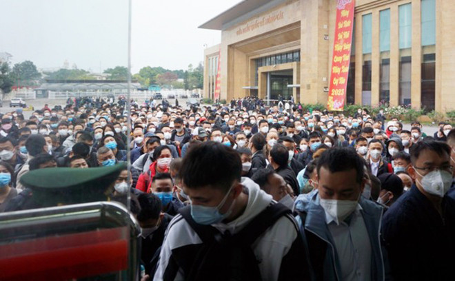 Từ sáng sớm nay (8/1), hàng trăm người xếp hàng dài tại cửa khẩu quốc tế Móng Cái (Quảng Ninh) để làm thủ tục xuất cảnh sang Trung Quốc. Đa số những người tập trung tại đây đều là công dân Trung Quốc làm việc tại Việt Nam chờ xuất cảnh về quê ăn Tết.
