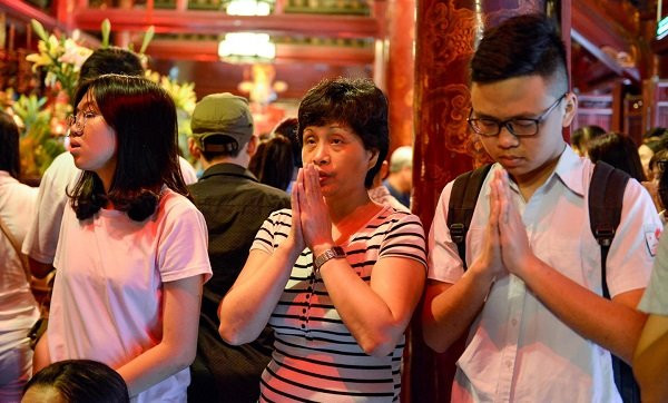 Bên trong các điện thờ, cảnh đông nghẹt người diễn ra suốt buổi trưa, vài giờ sau thời gian làm thủ tục đăng ký thi tại địa điểm thi.