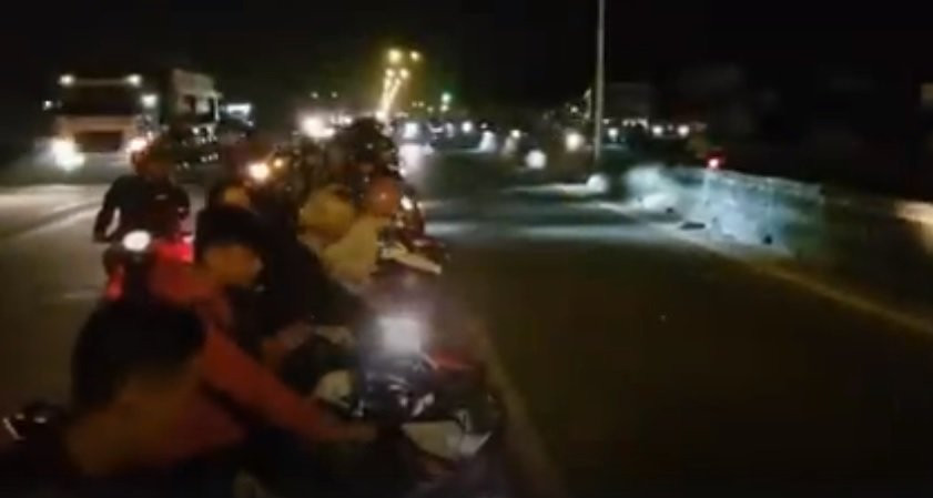Không những vậy, nhóm này còn ngang nhiên đứng dàn trận trên quốc lộ để các "quái xế" thoải mái so tài bằng việc bốc đầu xe cao cả mét cùng tốc độ kinh hoàng và tiếng nẹt bô ầm ĩ.