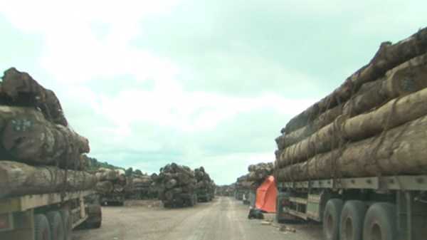 Có mặt tại cửa khẩu Quốc tế La Lay, một hàng dài xe chở gỗ tròn ùn ứ nằm ở hai đầu cửa khẩu. Phía bên dưới xe, các tài xế mắc võng, nấu ăn, sinh hoạt như một công trình.