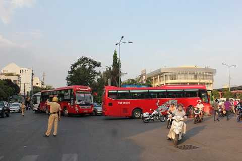Chiều 5/2, PV VTC News ghi nhận tình trạng tắc nghẽn xay ra tại bến xe Miền Đông. Lực lượng CSGT cũng đã có mặt tích cực phân luồng giảm tải trình trạng ùn tắc.