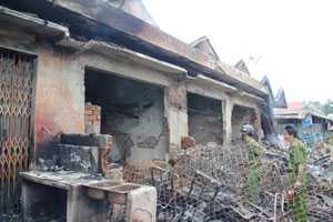 Do gặp phải vật dụng, hàng hóa dễ cháy nên vụ hỏa hoạn đã thiêu toàn bộ dãy ki-ốt gồm 6 lô, trong đó 2 lô bị sập tường bê-tông, cửa sắt hư hỏng nặng, cùng toàn bộ tài sản, hàng hóa bên trong.
