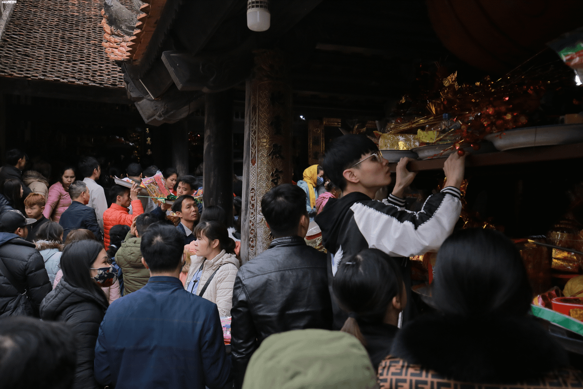 Hàng nghìn người chen chân trong sân đền dâng lễ.