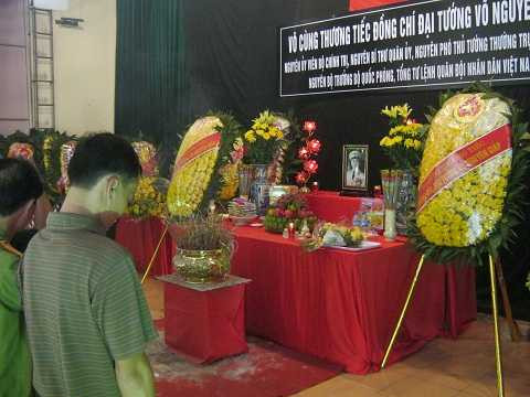 Theo lịch chung, lễ viếng Đại tướng Võ Nguyên Giáp sẽ kéo dài từ 16 giờ 30 phút ngày 10/10 đến 18h ngày 13/10. Tại các bàn thờ đều bố trí sổ tang để cán bộ, chiến sĩ và nhân dân viết cảm tưởng về người Đại tướng vĩ đại.