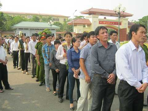| Hàng ngàn người xếp thành hai hàng kéo dài từ ngoài cổng Bộ chỉ huy Quân sự tỉnh Nghệ An vào khu vực làm lễ viếng Đại tướng Võ Nguyễn Giáp |