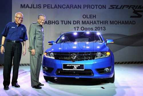 | Ông Mahathir Mohamad (áo dài tay) trong lễ ra mắt Proton Suprima S. |