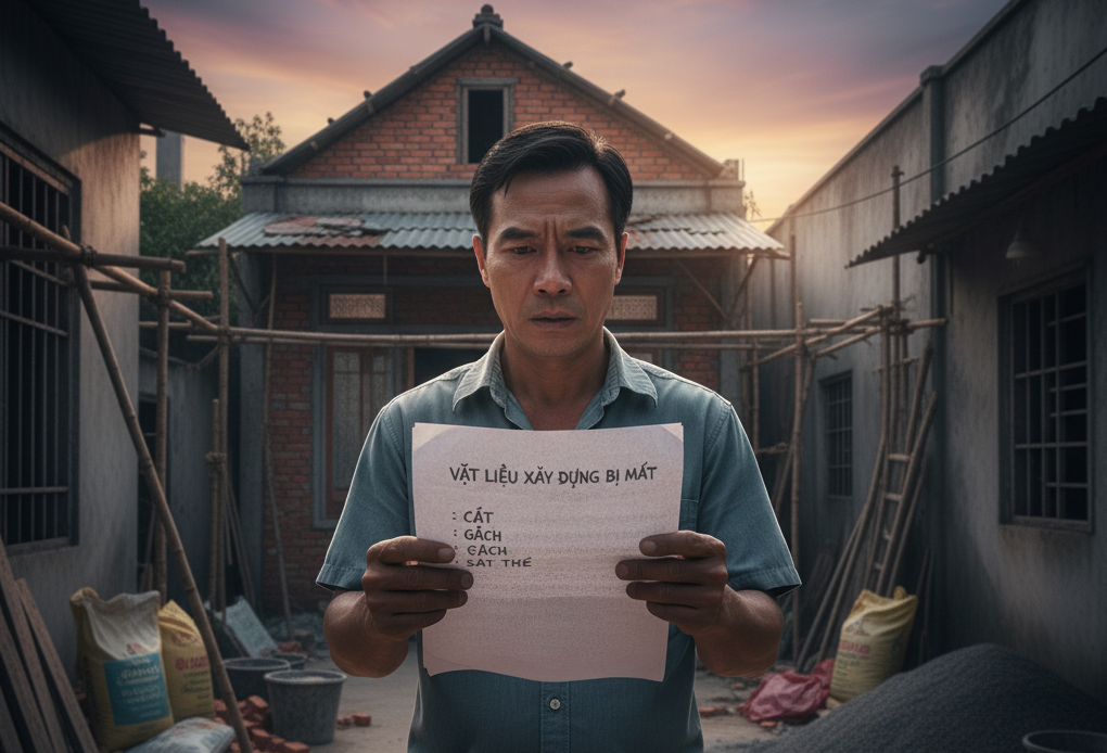 Nhà tôi ngay mặt ngõ, chật chội nên vật liệu cát, gạch, sắt thép phải tập kết ở sân trước. Ban ngày có thợ làm, mọi thứ còn kiểm soát được. Khi đêm đến, vật liệu thỉnh thoảng biến mất một cách bí ẩn.