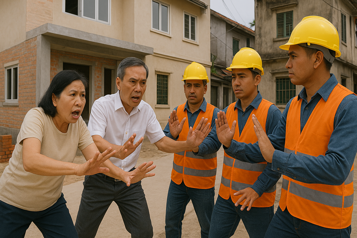 Vợ chồng tôi quyết định bỏ qua ngoài những lời nói của hàng xóm để tiến hành xây dựng. Nhà họ liên tục gây chuyện, suốt ngày sang cự cãi với thợ xây, chửi mắng và dọa đánh, gây áp lực khiến đội thi công mệt mỏi, có người còn doạ bỏ việc.
