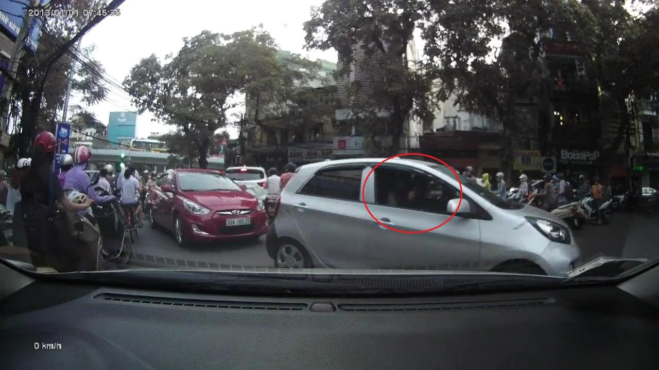 Thấy chiếc KIA Morning màu xám đang chật vật tránh luồng xe máy, tài xế ô tô gắn camera hành trình liền chủ động lùi xe, nhường đường. Cảm kích vì hành động đẹp, tài xế xe KIA Morning vui vẻ giơ ngón tay cái thay lời cảm ơn.