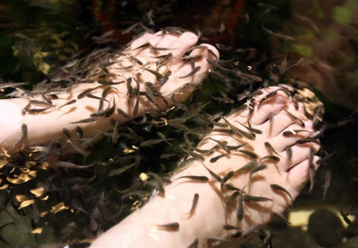 Sự cố xảy ra khi 2 người đàn ông Trung Quốc tới một spa để mát-xa bằng liệu pháp ngâm mình vào bể nước với hàng nghìn con cá còn sống.