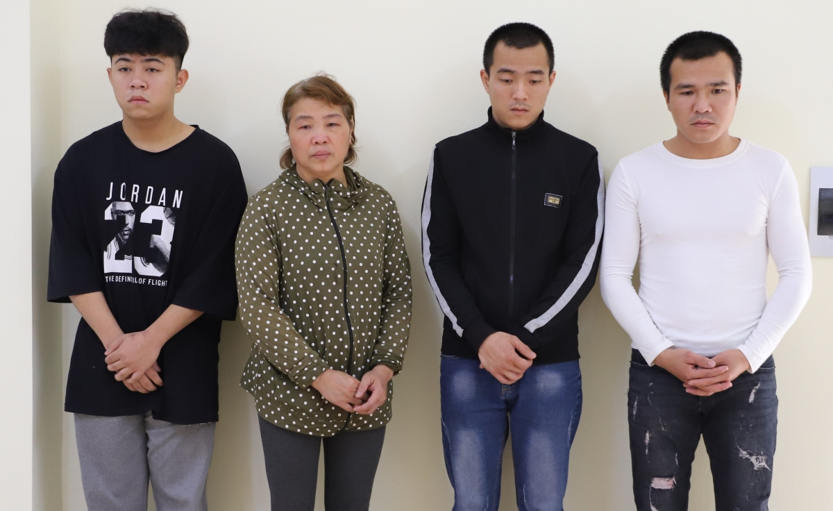 Hiếu, Hồng, Lực, Công (từ trái sang phải) tại cơ quan công an.