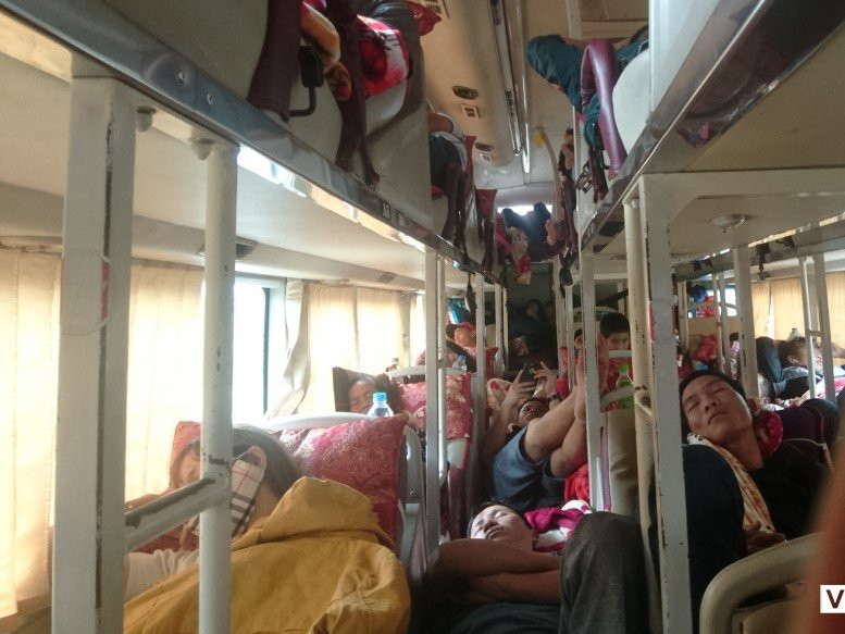 Xe khách không còn chỗ trống vì chở rất nhiều người quá quy định.