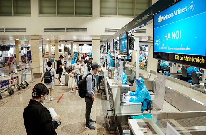 Hành khách đi máy bay chỉ cần khai báo y tế điện tử thay vì phương pháp thủ công như trước. (Ảnh minh họa: VGP)