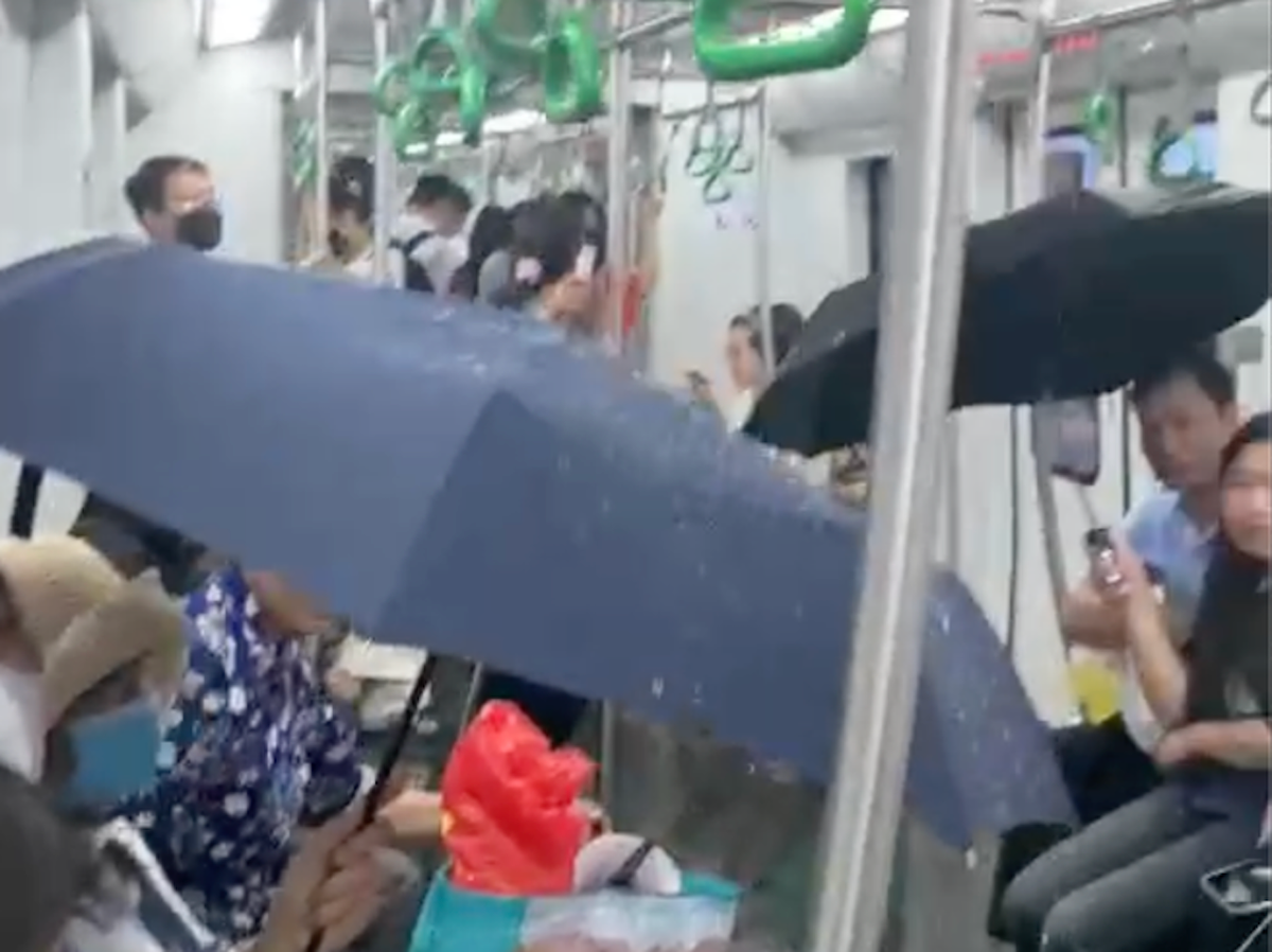 Một hành khách cho biết, khoảng 17h45 - 17h50, khi tàu di chuyển từ Cát Linh về Hà Đông thì xảy ra tình trạng nước chảy từ trần xuống. Nhiều người hoảng hốt, tìm cách tránh né để không bị ướt. Một số hành khách phải mở ô ngay trong toa tàu như đang đi dưới trời mưa.
