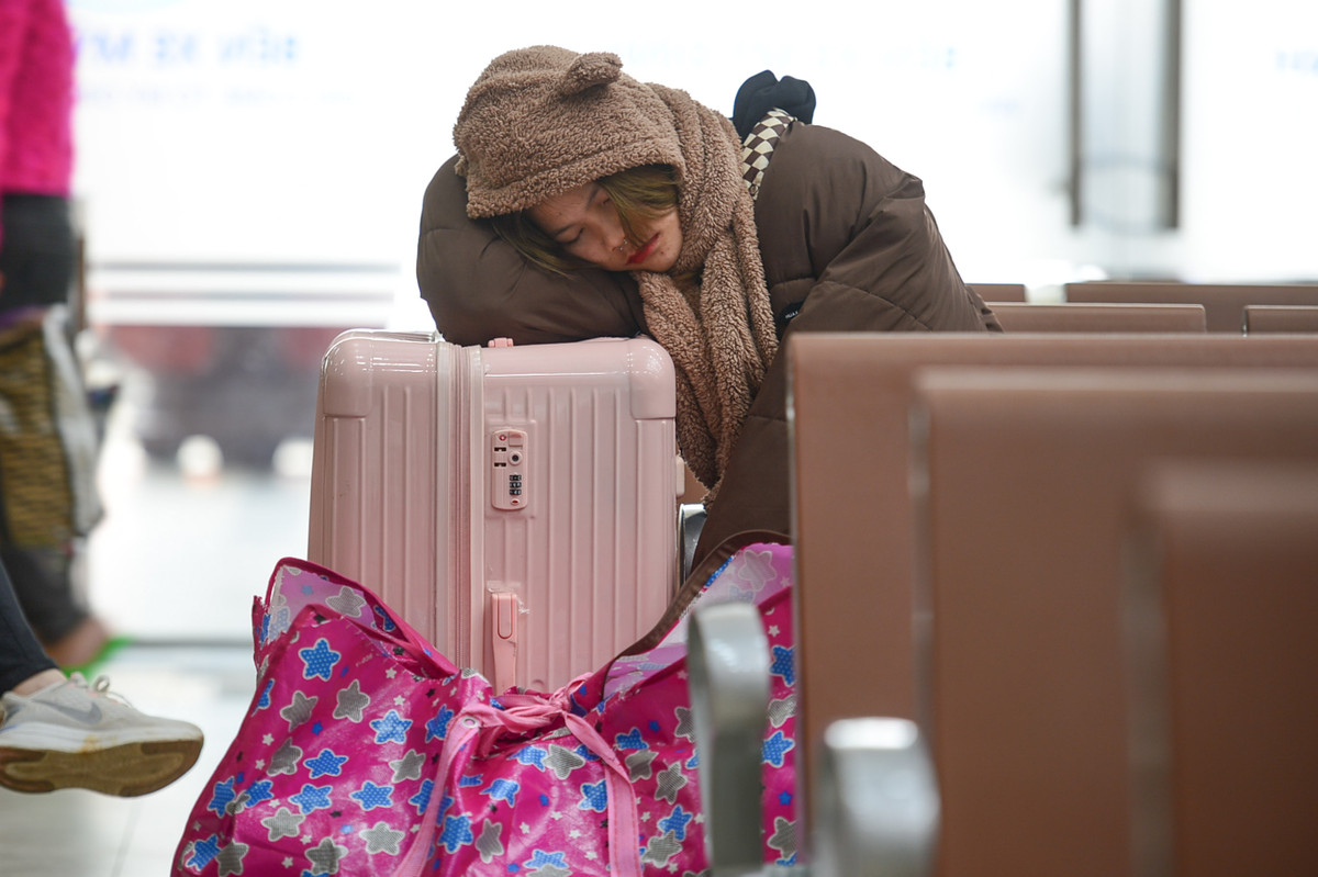 Cô gái tranh thủ chợp mắt trên ghế trong lúc chờ xe khởi hành.