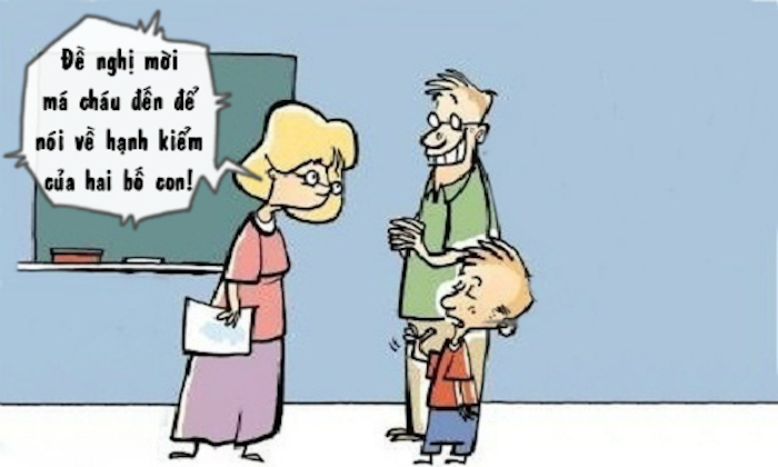 - À, ừ thì cô mời má tao để than phiền về hạnh kiểm của... ba tao!