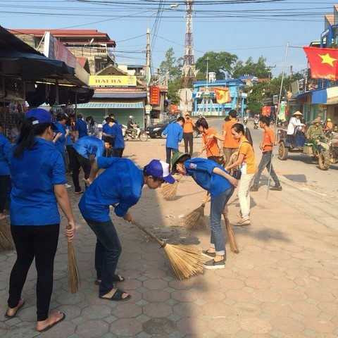 Hình ảnh của những CBNV trẻ của FPT Telecom tại khu vực Thái Nguyên chung tay cùng Đoàn Thanh niên xã Đại Từ làm công tác tổng vệ sinh, làm đẹp mỹ quan đô thị, đạt giải Sức trẻ yêu thương.