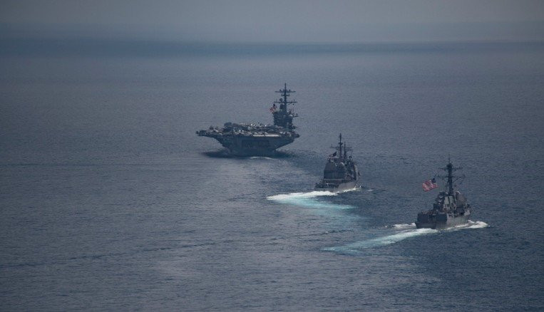 Tuy nhiên, trong thời điểm đó, tàu sân bay USS Carl Vinson lại đang dẫn đầu hạm đội di chuyển theo hướng ngược lại để tham gia vào đợt diễn tập chung trên Ấn Độ Dương.