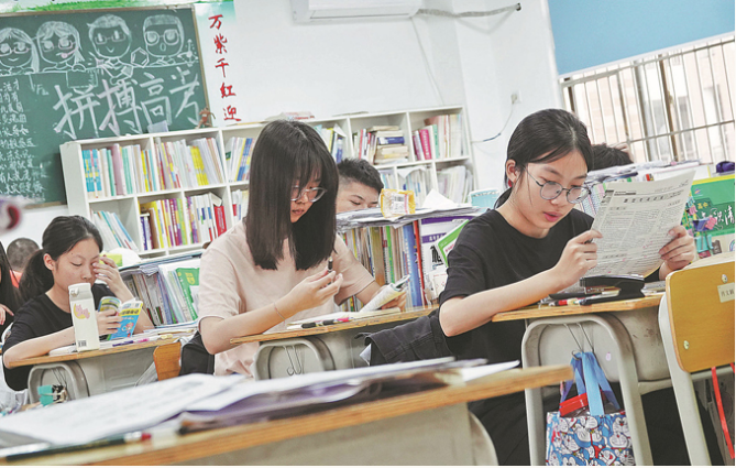 Học sinh trường Trung học Dongmeng ở thành phố Nam Ninh, Khu tự trị dân tộc Choang Quảng Tây trong giờ ôn luyện. (Ảnh: China Daily)