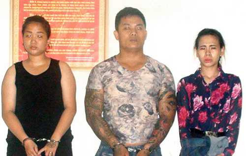 | Bà Lan (áo trắng) và 2 đối tượng Hải - Dương. |