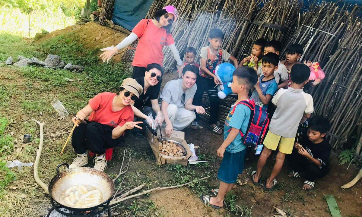 Những thành viên của nhóm thiện nguyện Bếp Củi mang bữa ăn ấm đến với trẻ em vùng sâu, vùng xa. (Ảnh: N.Q.T.)