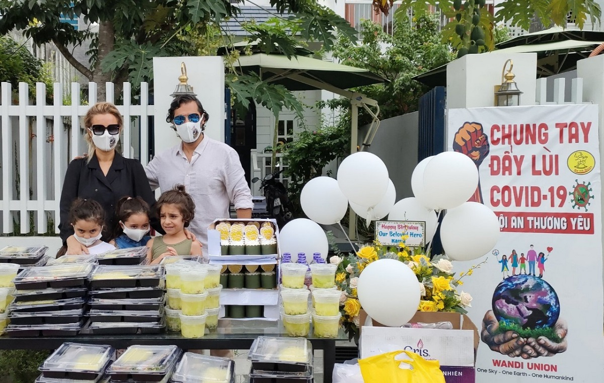 Wandi nhớ lại, sang Việt Nam được 4 tháng, địa phương nơi vợ chồng anh cư trú bùng phát dịch COVID-19. Phố xá nhộn nhịp, đông đúc du khách của những ngày trước đó bỗng dưng vắng lặng. "Trí nói với tôi, tình hình dịch bệnh rất căng thẳng, nhiều người đang gặp khó khăn và cần được giúp đỡ. Không do dự, vợ chồng tôi đồng ý góp tiền cùng nhóm của Trí mua gạo, mì gói và nhiều thứ khác rồi đến tận nhà trao cho người nghèo. Đó là chương trình có ích đầu tiên, gia đình tôi thực hiện ở đất nước của các bạn", Wandi cho hay.