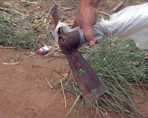 Mở rộng hiện trường tìm kiếm, công an thu được trong vườn bắp của gia đình nạn nhân 1 cây búa chim dính máu, tóc nạn nhân, xác định đó chính là hung khí thủ phạm gây án.