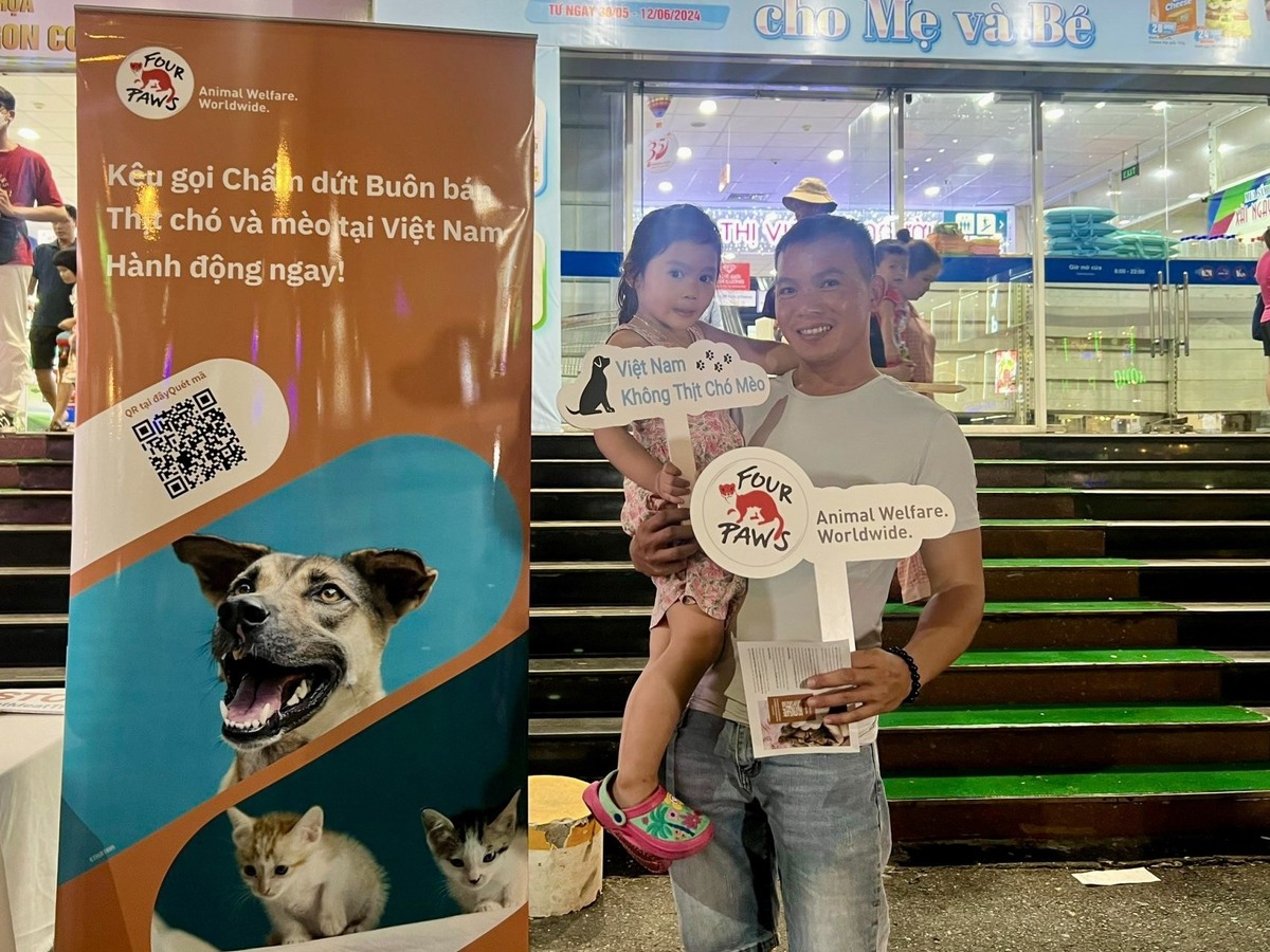 Tổ chức phúc lợi động vật toàn cầu FOUR PAWS đã hoạt động tại Việt Nam từ năm 2019, phối hợp cùng chính quyền để giải quyết các rủi ro từ việc buôn bán thịt chó, mèo. Đến nay, FOUR PAWS đã nhận được sự ủng hộ của 2 triệu người trên khắp thế giới, trong đó có hơn 250.000 người Việt Nam, phản đối hoạt động tàn nhẫn này và kêu gọi chấm dứt buôn bán thịt chó và mèo.