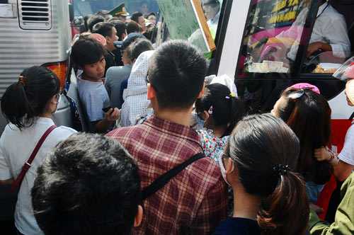 Năm nay, kì nghỉ lễ kéo dài 5 ngày nên rất nhiều người tranh thủ về quê khiến lúc trở lại nơi học tập, làm việc nhiều người phải “vật vã” mới đón được xe.