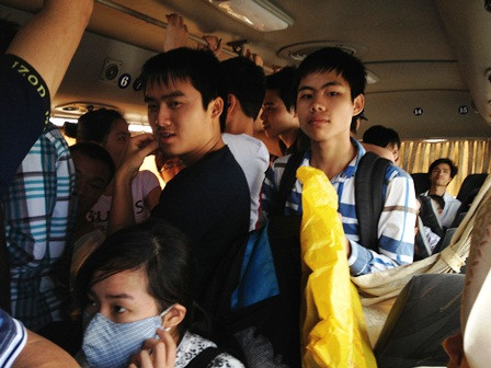 Bạn Nguyễn Tuấn Huy (ở Thanh Hóa, Sinh viên trường ĐH Quốc gia Hà Nội) cho biết: “Đứng đợi từ sáng sớm để đón xe ra Hà Nội, giờ gần trưa rồi mà vẫn chưa bắt được xe nào anh ạ. Xe qua thì nhiều, nhưng hầu hết xe nào cũng chật cứng, tiền thì các nhà xe cứ hét trên trời khiến bọn em cũng lưỡng lự, chê đắt không đi thì sợ không có xe để ra trường cho kịp, mà đi thì lại chấp nhận bị “chém” mà lại phải ngồi chen chúc nhau, khổ lắm” .