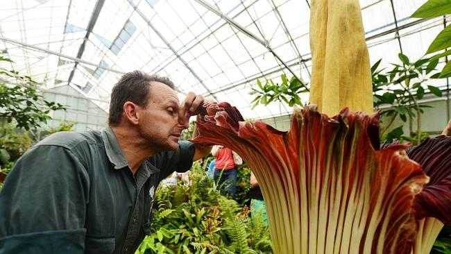 Bông hoa khổng lồ có thể đạt tới chiều cao 1,8m Chỉ nở trong 1-2 ngày nên nhiều người đã lên lịch sẵn, ghé thăm vườn Huntington đúng dịp, nhằm không bỏ lỡ cơ hội chụp ảnh với hoa xác thối có một không hai.