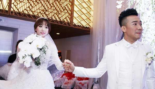 Trong lễ cưới cổ tích được tổ chức tối 25/12, khi được chú rể Trấn Thành đưa lên sân khấu cử hành nghi lễ, Hari đã không giấu nổi niềm hạnh phúc của mình.