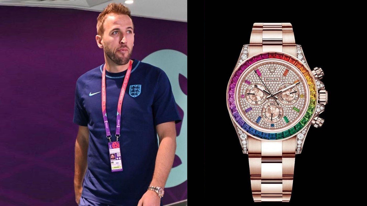 Trước trận đấu Anh thắng Iran, Harry Kane đã đeo một chiếc đồng hồ kim cương cầu vồng của hãng Rolex trị giá gần một triệu USD khi đến sân vận động ở Doha, NDTV đưa tin ngày 25/11.