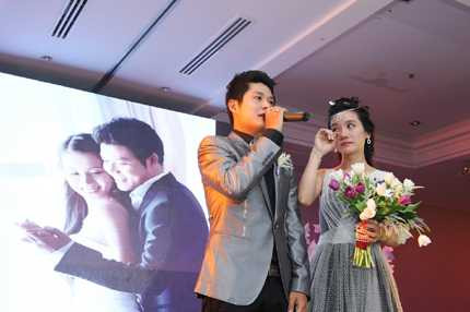 Sau đó, nhạc sĩ thừa nhận là …hát nhép vì hồi hộp quá khiến tất cả khách mời cười rộ. Chú rể còn hài hước bày tỏ nỗi lo: “Không biết ngày mai có bị xử phạt không đây?”.