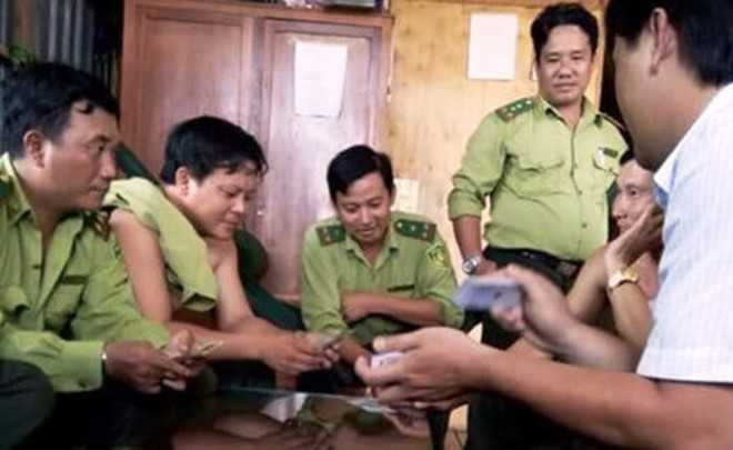 Theo dự kiến, cuộc họp sẽ diễn ra vào buổi sáng nhưng có một số việc xảy ra nên dời lại buổi chiều. Trong lúc chờ họp, vài cán bộ kiểm lâm rủ nhau đánh bài ăn tiền, mỗi ván 5.000-10.000 đồng. Kết thúc cuộc sát phạt, số tiền gom lại được khoảng 300.000 đồng. Số tiền này sau đó được sử dụng để mua thuốc hút và nước uống.