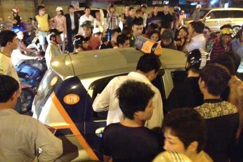 | Tài xế taxi cố thủ bên trong sau khi hất nữ nạn nhân lên nắp capo chạy 200m. Ảnh: Báo GT |